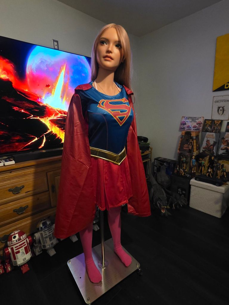 So I took Vicky and dressed her up in an overdue Supergirl cosplay.